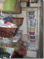 While I didn’t do any actual craft projects, I did accumulate LOTS of stuff for doing craft projects. And to make matters worse, I just let it stack up everywhere! I couldn’t even see what I had, much less find space to work in.
